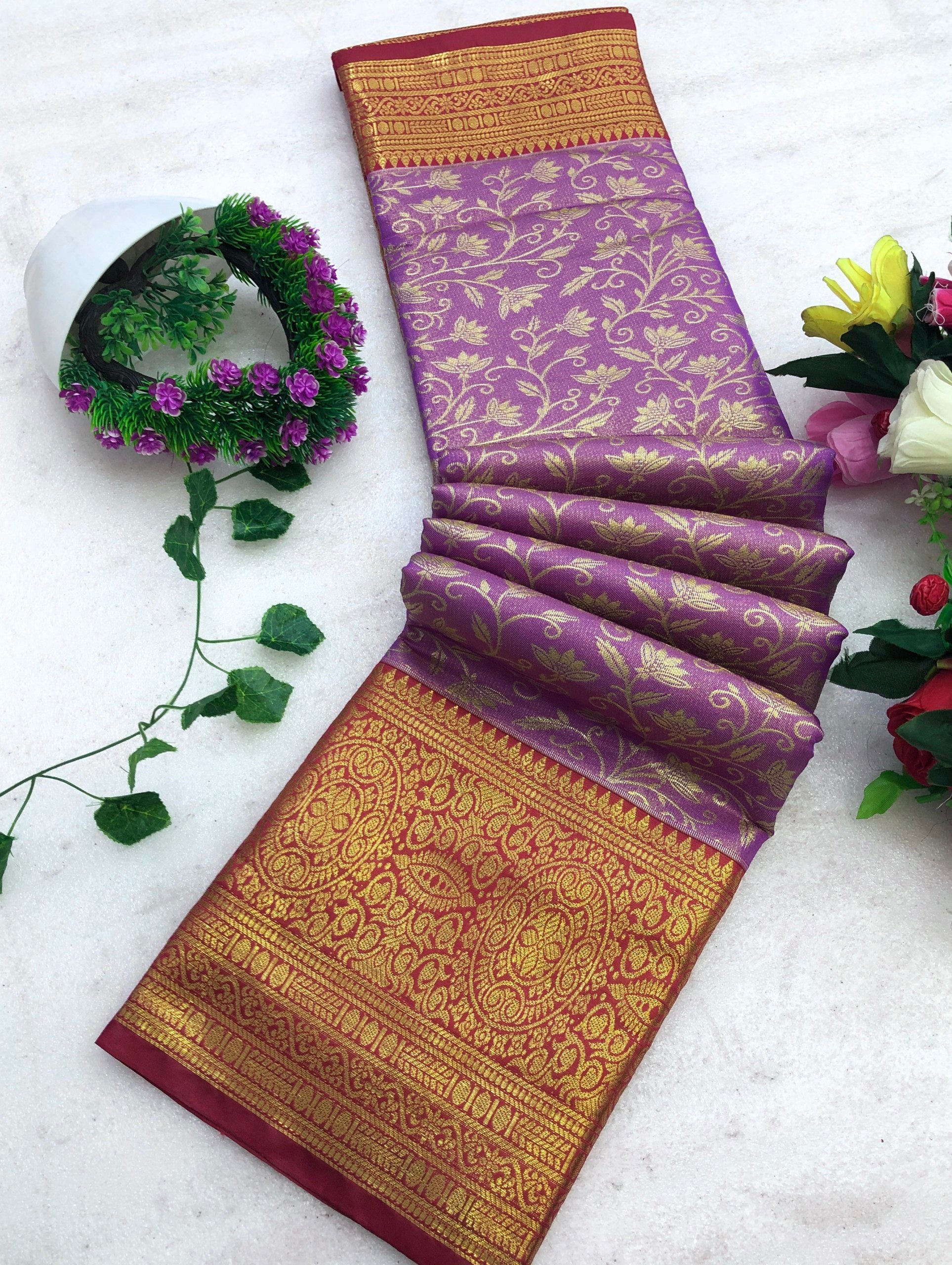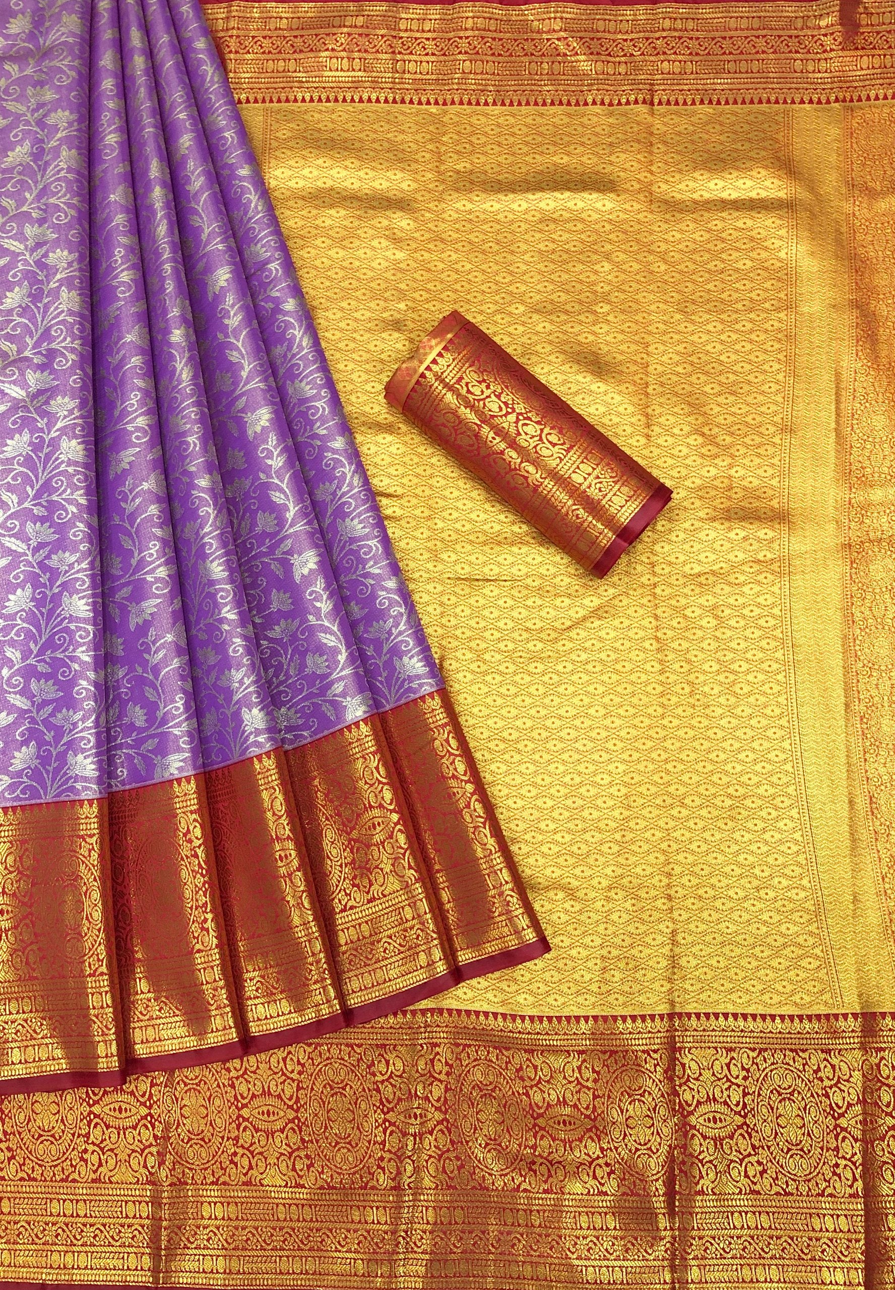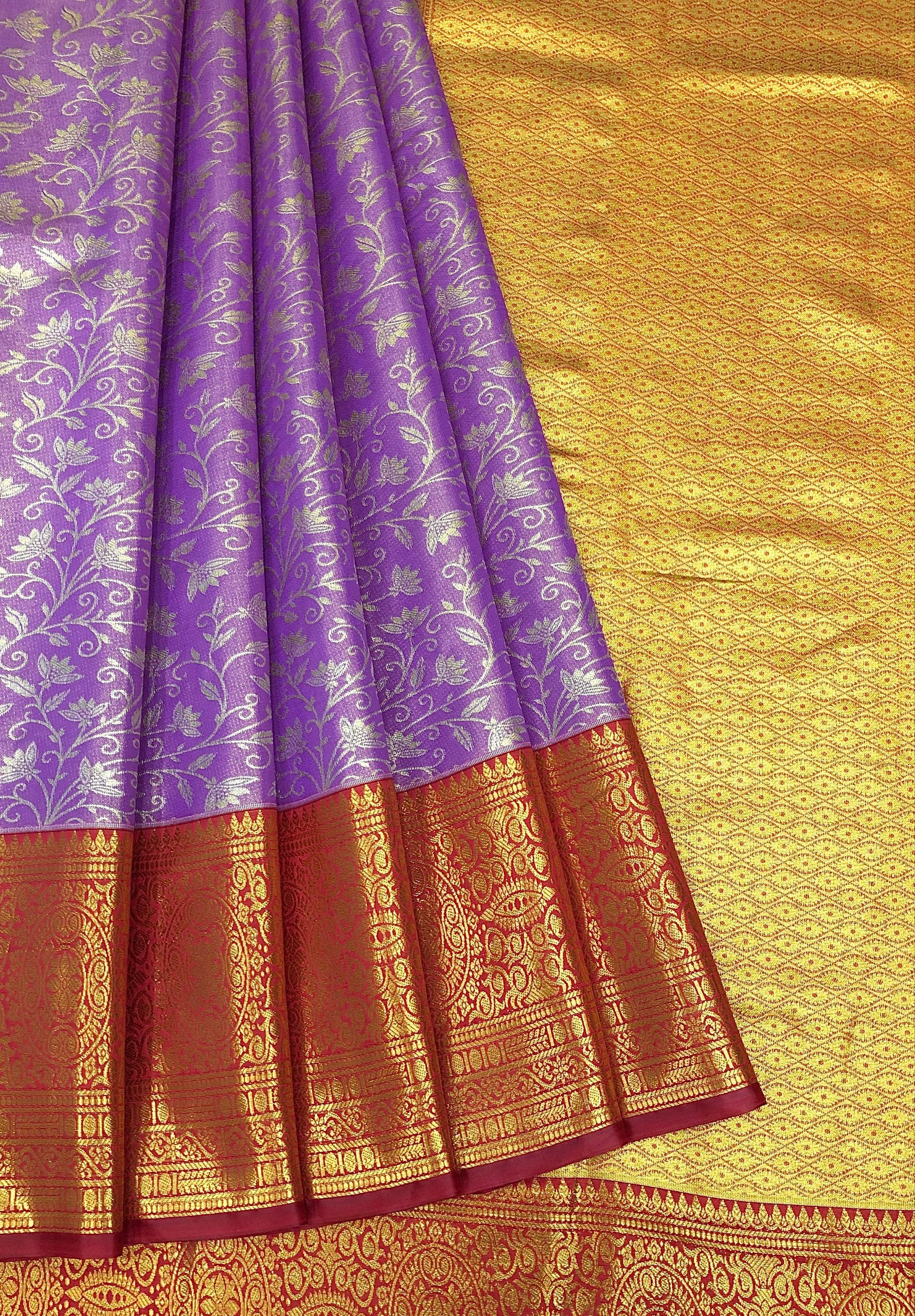Saree description - Kanjivaram pattu silk floral jal design weave saree with 10inch gemotrical design weaving border & maroon colour rich weaving pallu